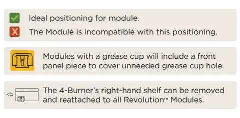 Note: Due to the gas burner configuration on the left side, modules can only be attached on the right side of the 4‑Burner.