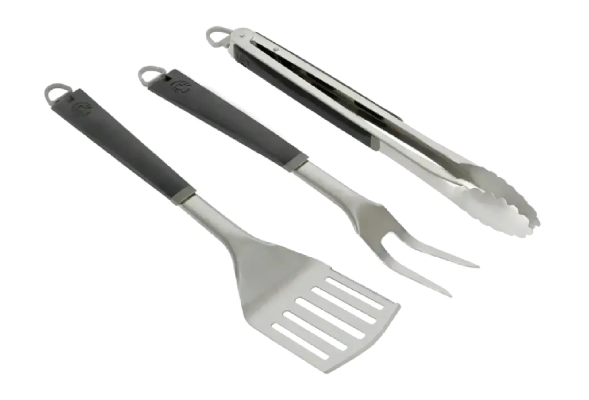 Double-stacked cooking grates offer double heat retention while capturing and redirecting all fats and grease to the removable front grease cup.