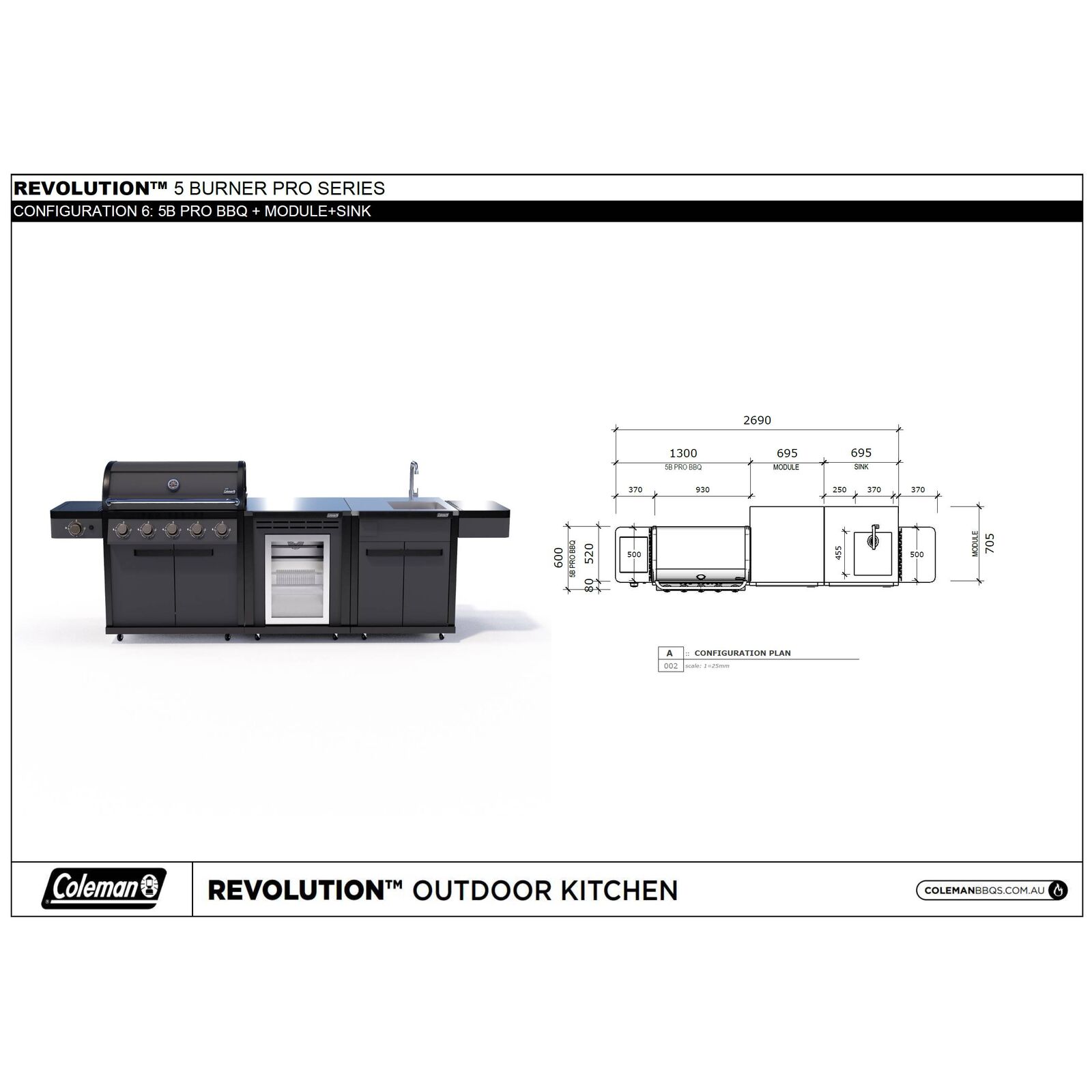 Coleman® Pro Series 5 Burner Kitchen with Fridge and Storage Module – Matte Black