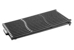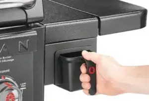 Double-stacked cooking grates offer double heat retention while capturing and redirecting all fats and grease to the removable front grease cup.