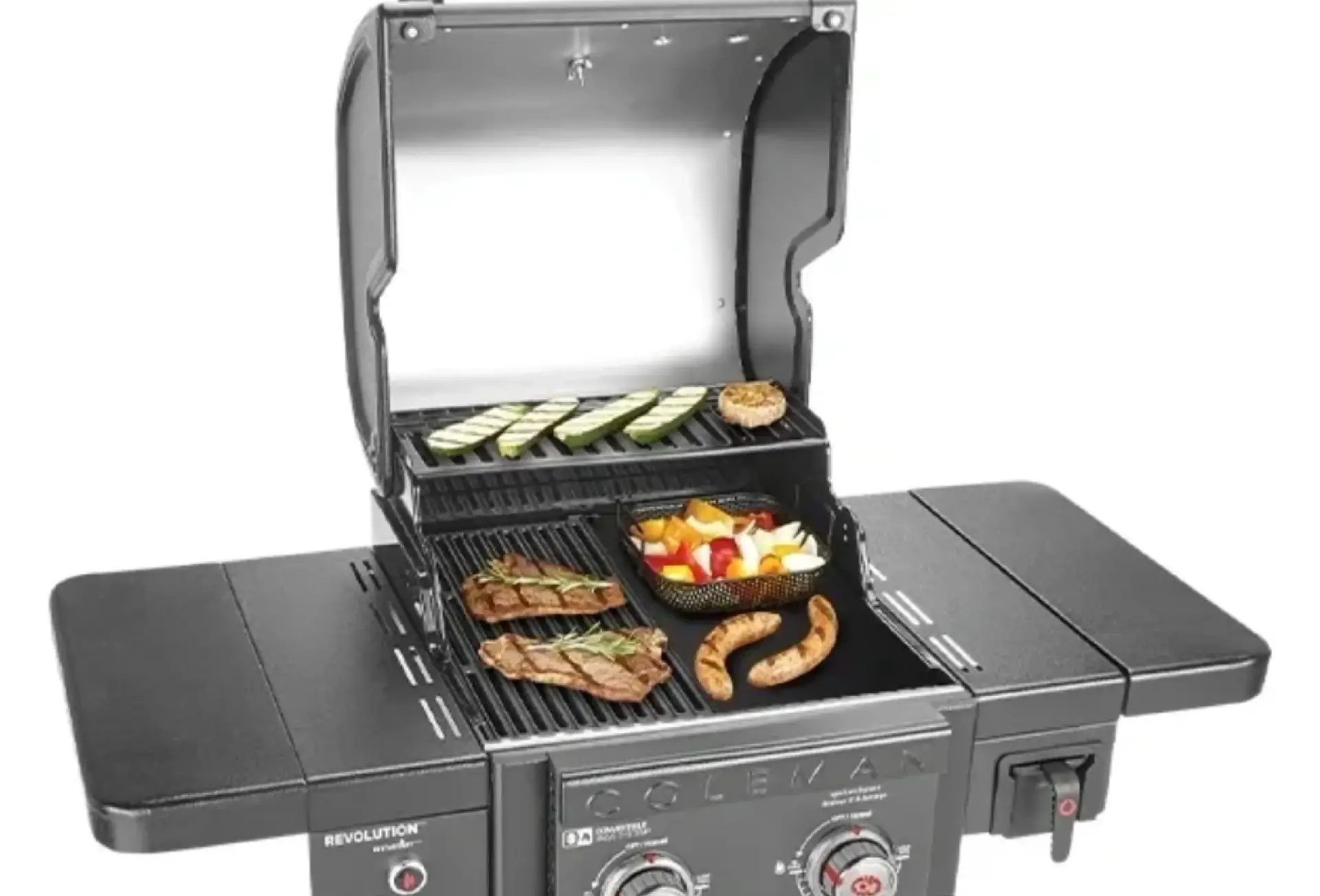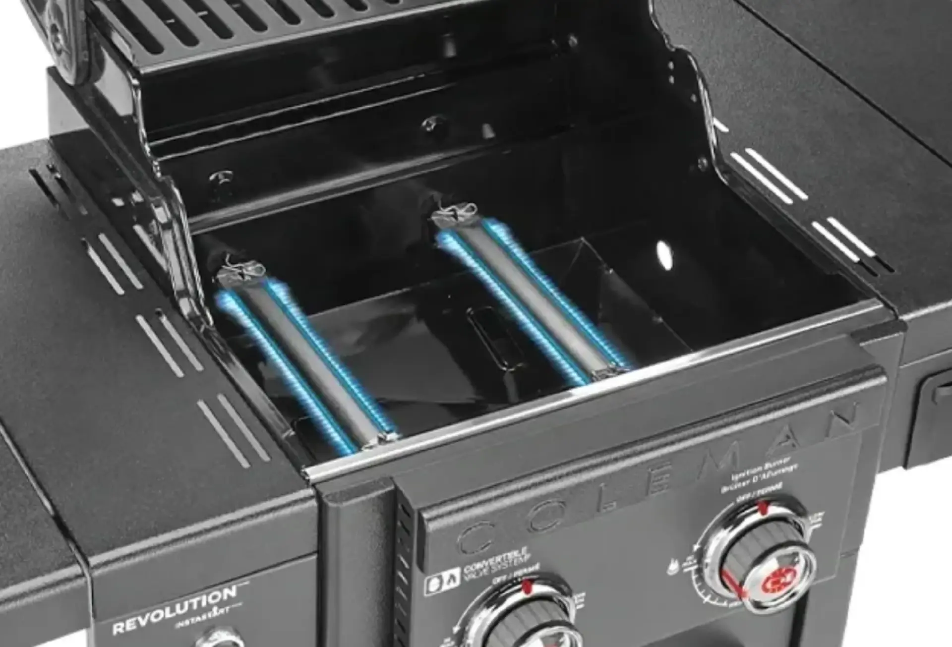 The Coleman Revolution™ 2-Burner Barbecue is a versatile and compact grill, perfect for outdoor cooking. Featuring the patented Flare-Free Technology™, this grill captures and removes 75% more grease, eliminating flare-ups and hot spots to ensure no more burnt or overcooked food. The two stainless steel burners deliver a powerful 31.1 MJ (30,000 BTU) of heat, while the folding side shelves provide extra workspace for easy food preparation. The Instastart™ ignition system ensures quick and easy lighting, even in challenging conditions.