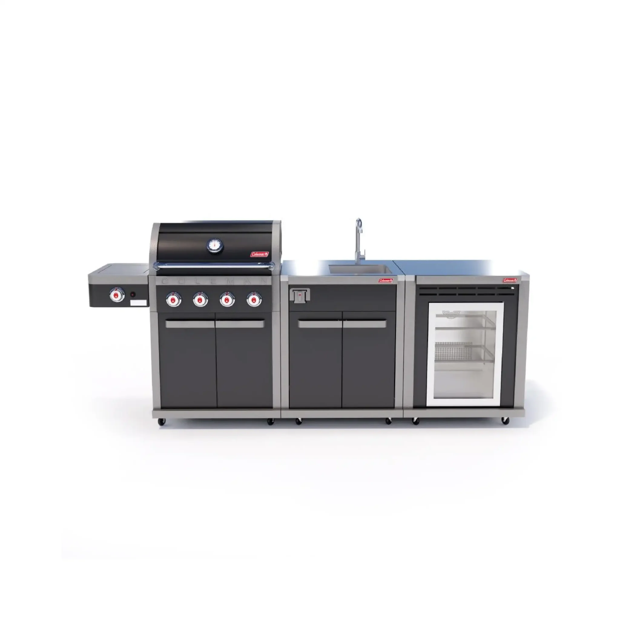 The Colemanยฎ Revolution™ 4-Burner Barbecue sets a new standard for outdoor cooking. Featuring the patented Flare-Free Technology™, this grill captures and removes 75% more grease, eliminating flare-ups, hot spots, and ensuring no more burnt or overcooked food. Double-stacked cooking grates offer twice the heat retention while directing all fats and grease to the removable front grease cup through the front grease channel. Lighting is never a problem with the Instastart™ ignition, providing flawless operation even in harsh environments.