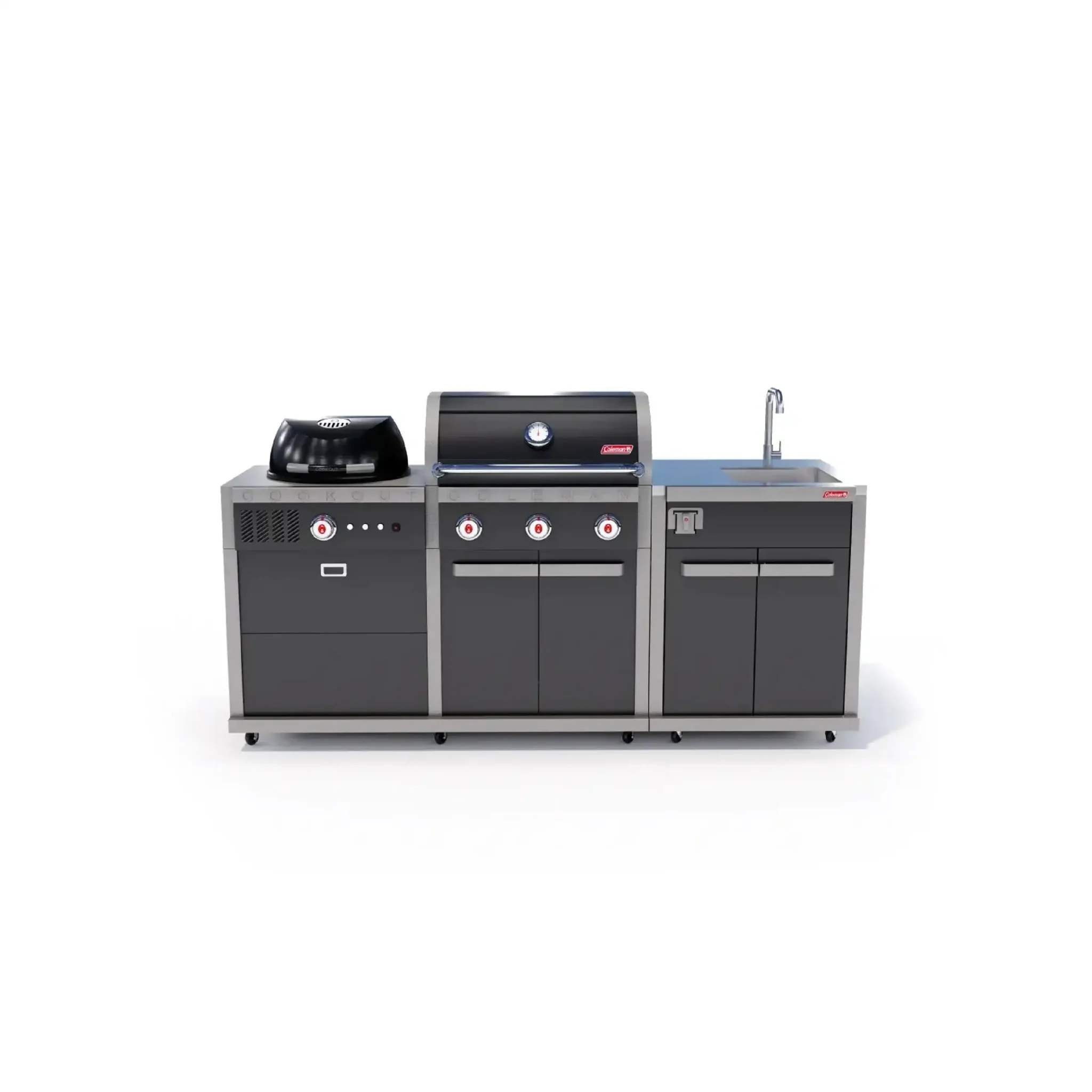 The Coleman® Revolution™ 4-Burner Barbecue sets a new standard for outdoor cooking. Featuring the patented Flare-Free Technology™, this grill captures and removes 75% more grease, eliminating flare-ups, hot spots, and ensuring no more burnt or overcooked food. Double-stacked cooking grates offer twice the heat retention while directing all fats and grease to the removable front grease cup through the front grease channel. Lighting is never a problem with the Instastart™ ignition, providing flawless operation even in harsh environments.