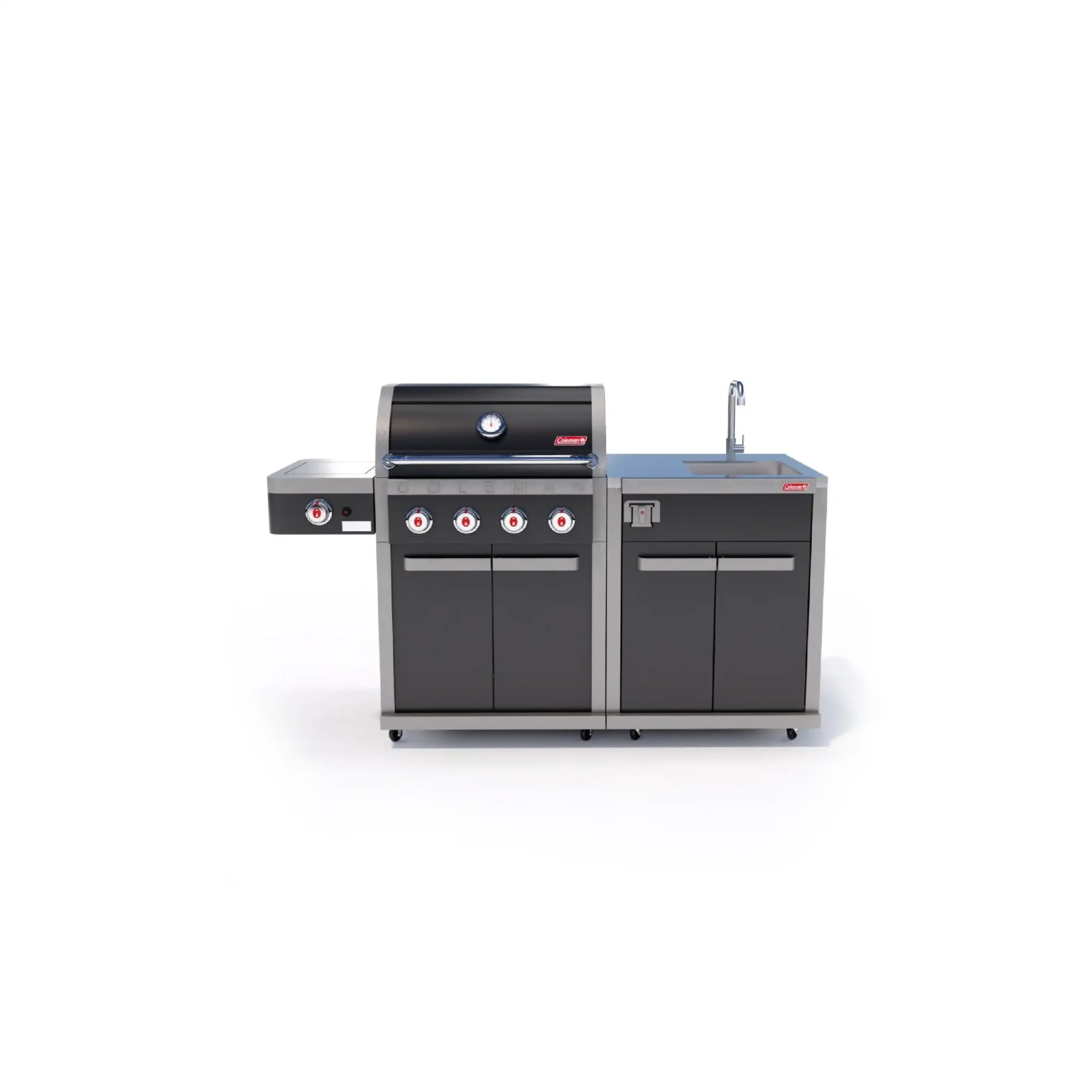 The Colemanยฎ Revolution™ 4-Burner Barbecue sets a new standard for outdoor cooking. Featuring the patented Flare-Free Technology™, this grill captures and removes 75% more grease, eliminating flare-ups, hot spots, and ensuring no more burnt or overcooked food. Double-stacked cooking grates offer twice the heat retention while directing all fats and grease to the removable front grease cup through the front grease channel. Lighting is never a problem with the Instastart™ ignition, providing flawless operation even in harsh environments.