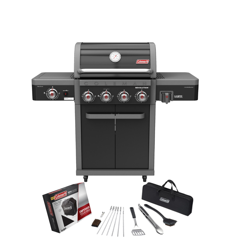The Coleman Revolution™ 4-Burner Barbecue sets a new standard for outdoor cooking. Featuring the patented Flare-Free...